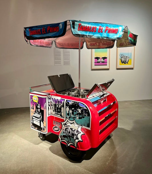 Collaboration w/ the MexiCali Biennial team who commissioned famous artist Ruben Ochoa to design a sidewalk cart to be put on display at The Cheech Marin Center of Chicano Art & Culture for the Land of Milk & Honey Exhibit. After the exhibit, the cart will be donated to the much deserving street vendor "Tamales El Primo"